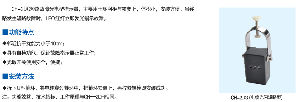 产品名称:CH-2DG电缆型短路故障指示器(光电显示)