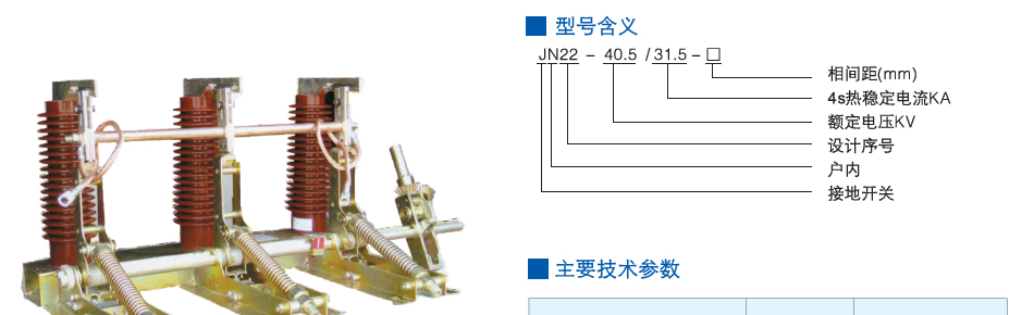 产品名称:JN22-40.5、31.5型户内高压接地开关