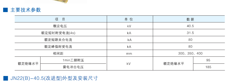 产品名称:JN22(B)-40.5、31.5型户内高压接地开关
