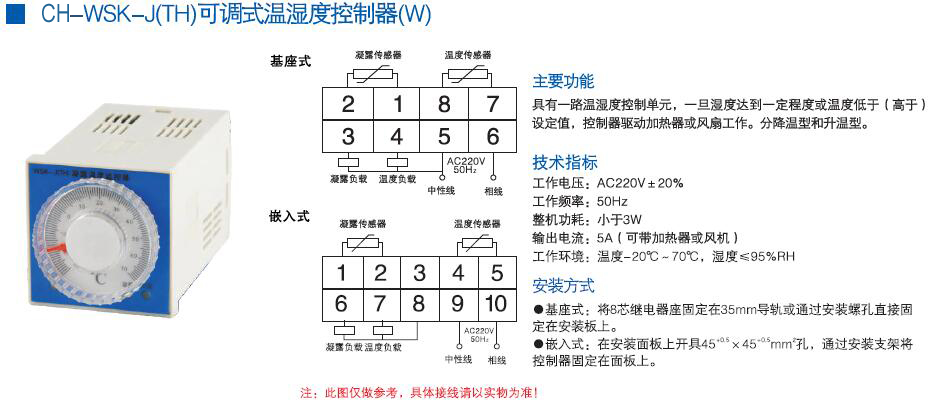 产品名称:CH-WSK-J(TH)可调式温湿度控制器(W)